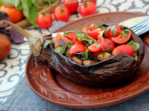 Выкладываем баклажаны на противень, застелив его бумагой для выпечки, или в смазанную маслом форму для запекания. Ставим в прогретую до 180 градусов духовку и запекаем 30-35 минут.