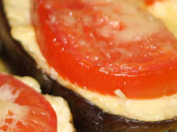 Подаём битые баклажаны с помидорами и сыром в тёплом виде, по желанию их можно украсить свежей зеленью. Приятного аппетита!