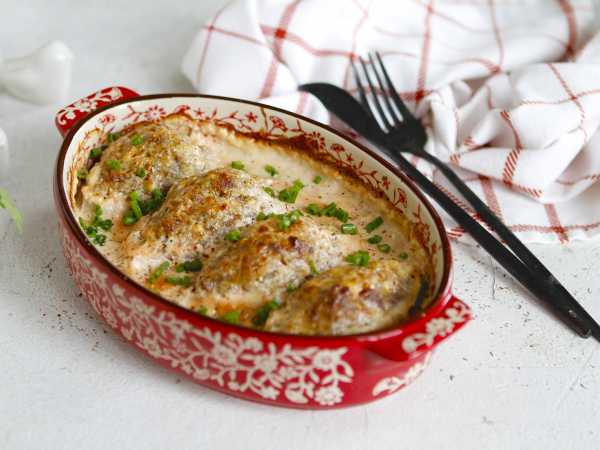 На капусту разложите фрикадельки. Поставьте форму с капустой и фрикадельками в разогретую до 180 градусов духовку и выпекайте 10 минут.