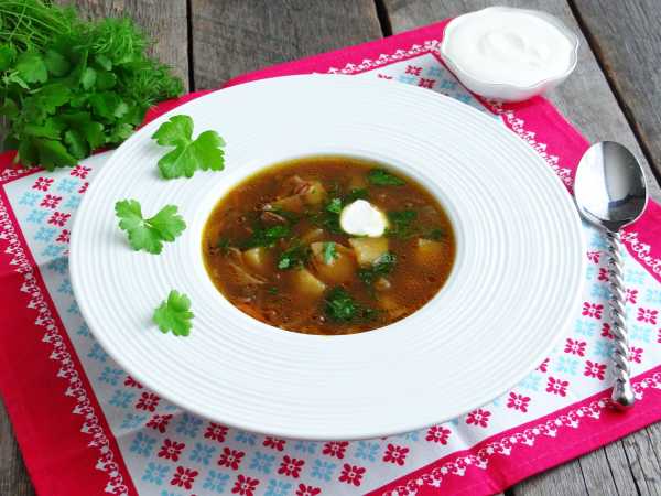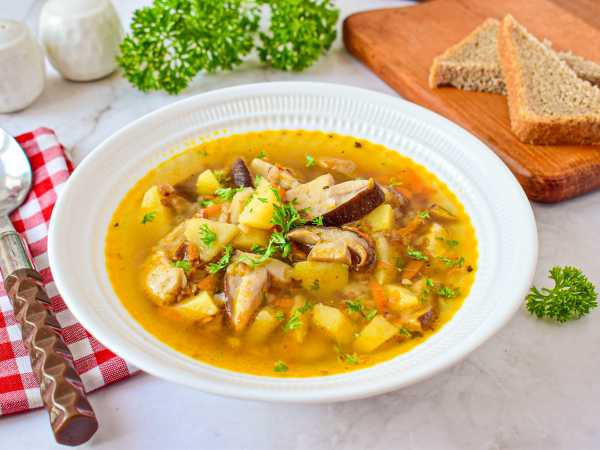 Густой, питательный, быстрый в приготовлении, ароматный и вкусный суп с грибами и фаршем готов! При подаче можно украсить суп свежей зеленью, подать к нему сметану.