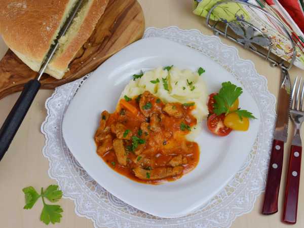Сочное и ароматное чанахи со свининой готово. Подавать его лучше в горячем виде, по желанию можно добавить свежую зелень. Приятного аппетита!