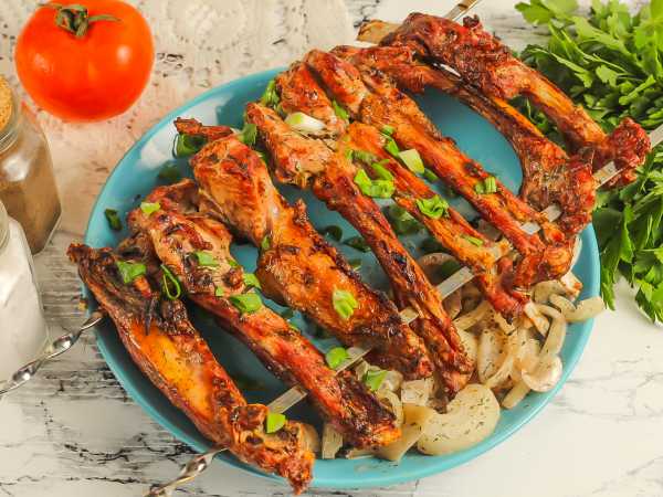 Жарить стейк из баранины на мангале, переворачивая, до румяного состояния с обеих сторон.