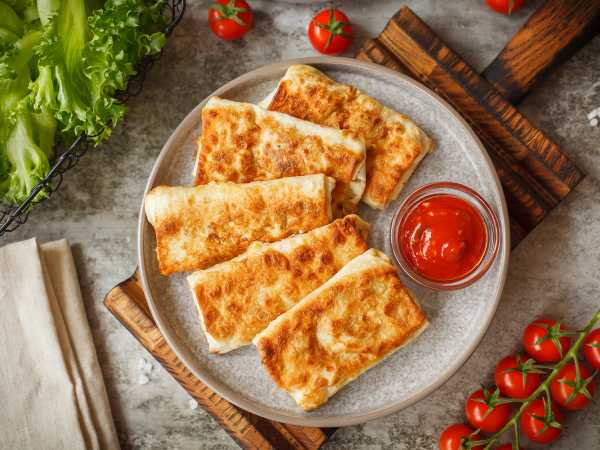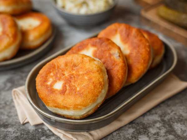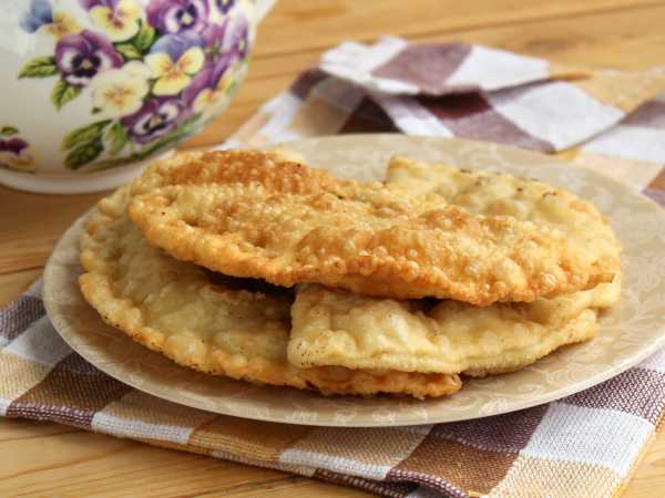 Жарить чебупели с курицей в горячем масле до румяного состояния с обеих сторон, огонь средний.