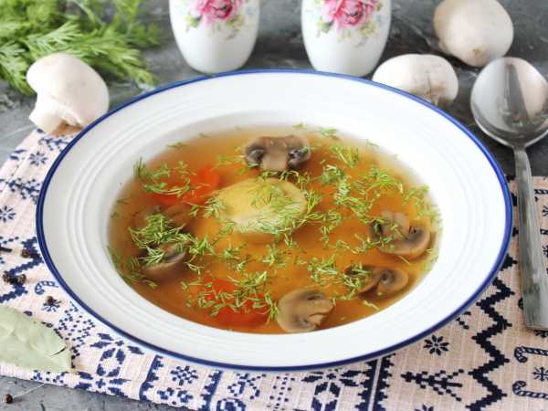 Выложите овощи и грибы в кастрюлю с супом.