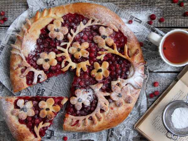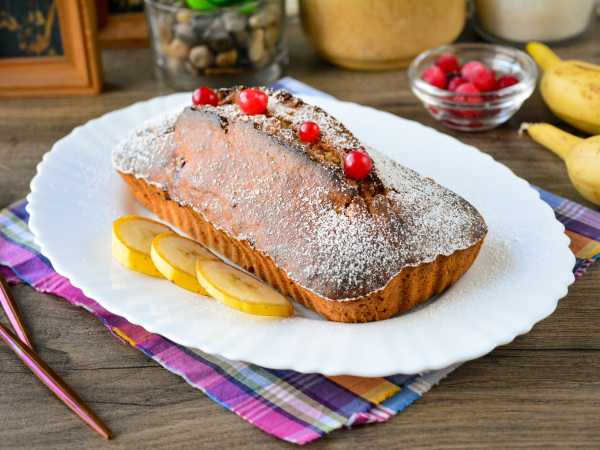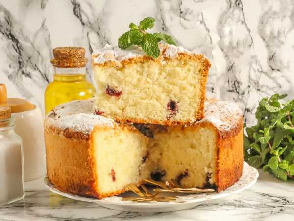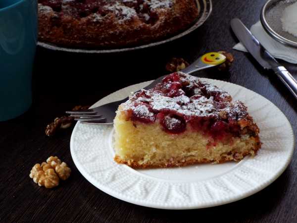 Бисквит с клюквой можно посыпать сахарной пудрой.