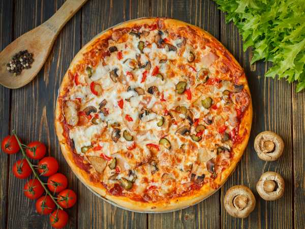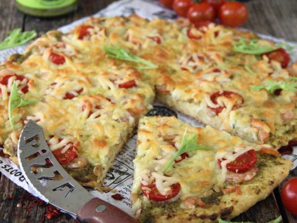 Кабачковая пицца готова. Аккуратно переложите пиццу на плоскую тарелку.