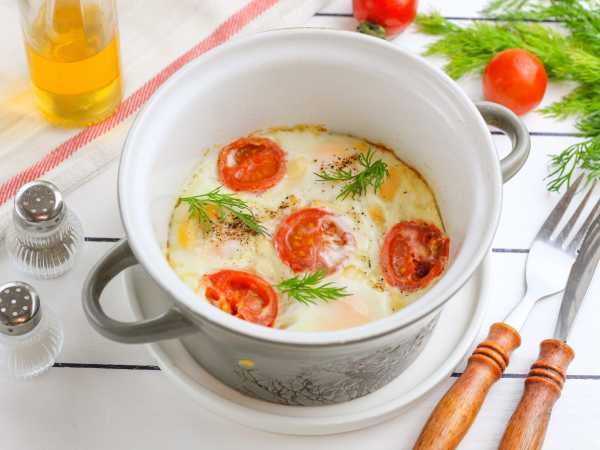 Запекайте яичницу с сыром в помидорах в духовке 15 минут при 200 градусах.