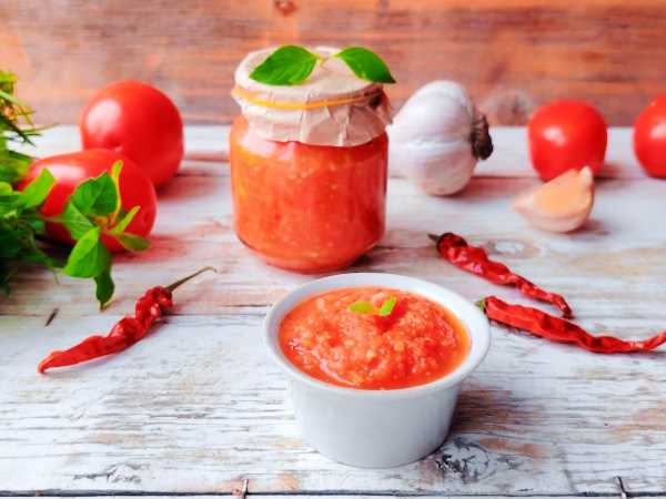 Продукты для приготовления соуса "Кобра" из помидоров на зиму - перед вами.