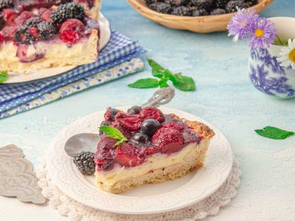 Вкусный, пышный рулет с ежевикой готов. Охладите его, нарежьте и подавайте к столу.
