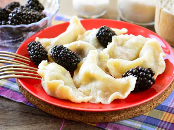 А пока тесто подходит, займитесь начинкой. Ежевику помойте и выложите в кастрюлю с толстым дном. Насыпьте сахар, перемешайте и нагревайте ягоды с сахаром до полного его растворения. При этом ежевика пустит сок.