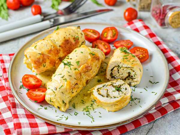После сверните рулет и выложите в форму для выпечки.