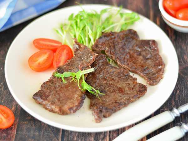 Обжарьте куски мяса со всех сторон на сильном, но не максимальном огне, чтобы они и запечатались, и приобрели вкусовую нотку, да и приготовление это действие тоже ускорит. Важно, чтобы мясо лежало в один слой, а времени потребуется около шести минут.