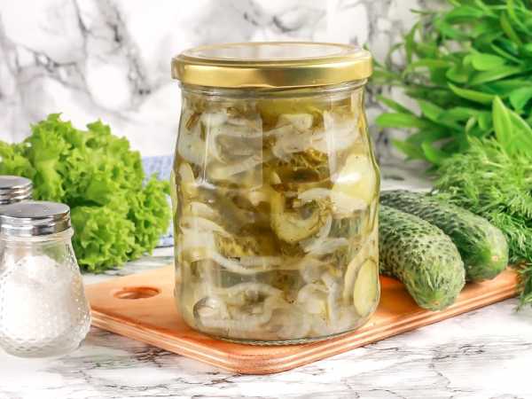 В кастрюлю или иную посуду налить масло, добавить овощи. Перемешать, оставить на ночь в холодильнике, чтобы огурцы пустили сок.