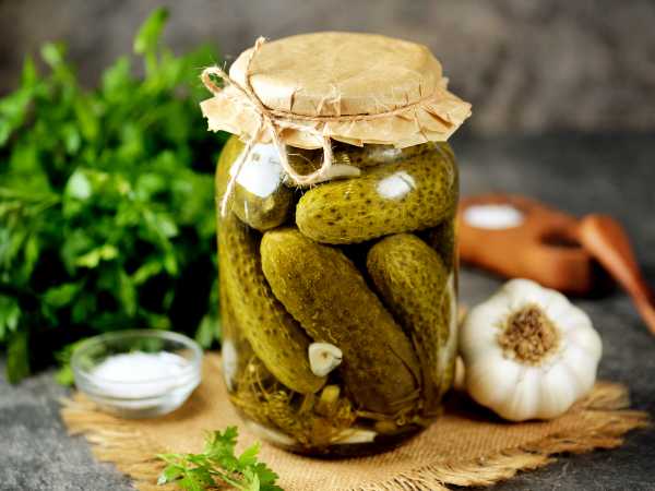 Собрать по списку продукты для заготовки переросших огурцов на рассольник на зиму. Огурцы подойдут неправильной формы и больших размеров, но порченые плоды использовать для консервации нельзя.