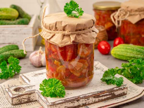 Разложить салат по стерильным баночкам. Остатки маринада также влить в банки, чтобы масса была закрыта жидкостью.
