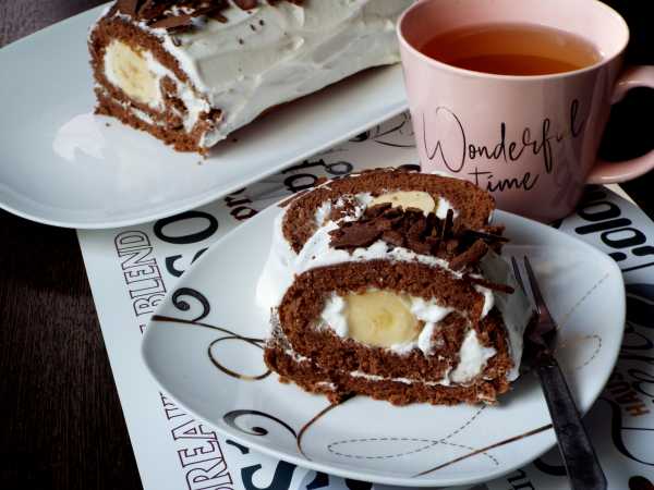 Вмешаем к бананам желтки и какао (и разрыхлитель, и ароматизатор, и сироп или сахар, если они используются).