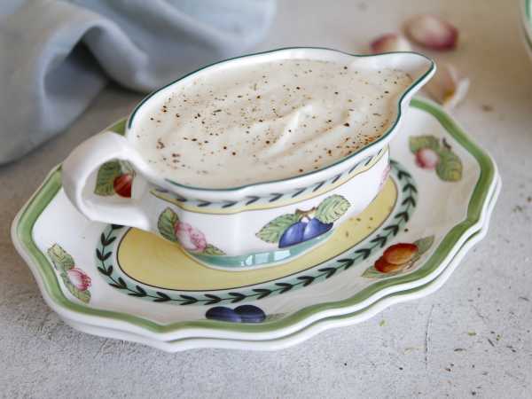 Как правило, к шашлыку подают разные томатные соусы. Захотелось изменить традиции и сделать к мясу на углях сливочный соус. Он слегка острый и ароматный.