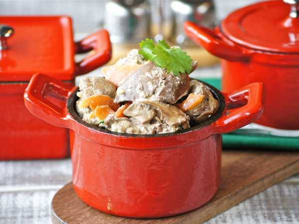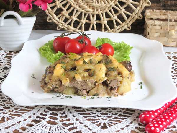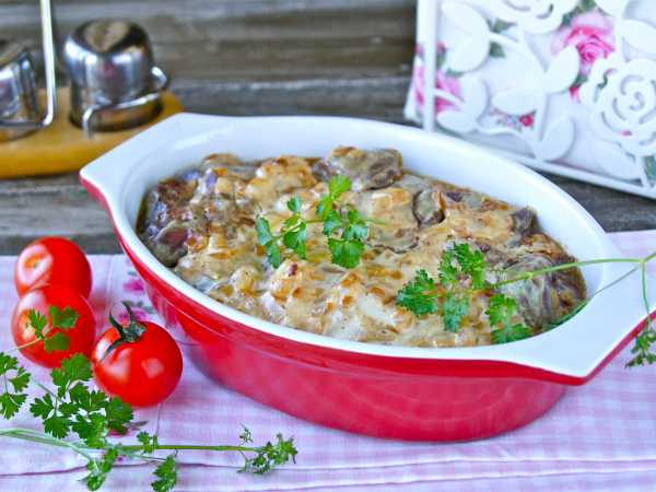 Печень куриную вместе с овощами выложите в форму для запекания.