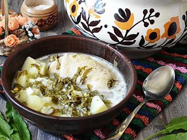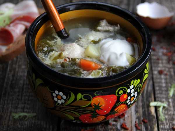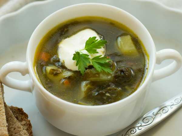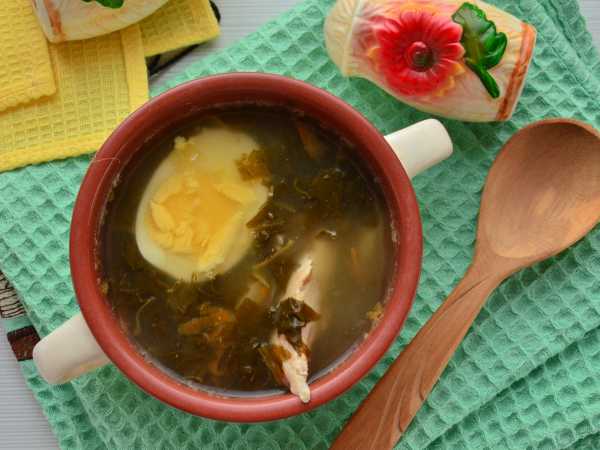 Тонкой струйкой влейте в кастрюлю со щавелем и, постоянно перемешивая, доведите до кипения. Снимите с плиты.