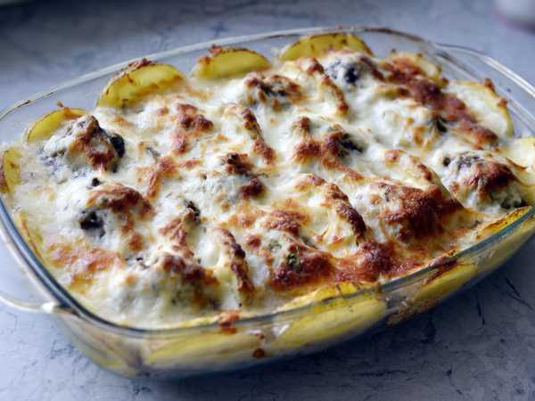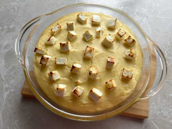 Подходящие небольшие формочки смажьте растительным или сливочным маслом и заполните подготовленным фаршем. Запеканку можно сделать в одной большой форме.