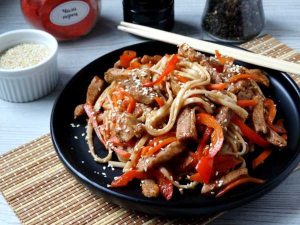 В кипящую подсоленную воду отправьте лапшу удон и варите согласно инструкции на упаковке. Удон варится очень быстро. Затем откиньте лапшу на дуршлаг.
