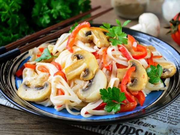 Соберите ингредиенты для приготовления лапши удон с рыбой.