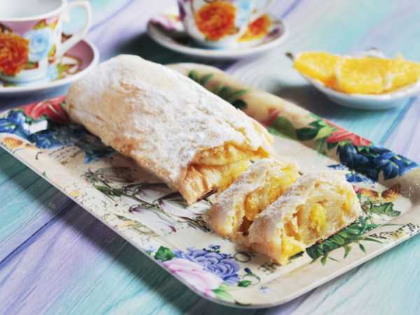 Слегка остывший рулет посыпать сахарной пудрой и подать к столу. Приятного чаепития!