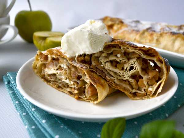 Продукты для штруделя с вареньем и орехами соберите по списку. Варенье лучше взять густое и однородное по консистенции (без кусочков фруктов).
