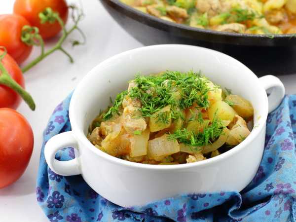 Так же, небольшими кубиками, нарезаем помидоры. Перекладываем их в фарш, добавляем измельчённую зелень и чеснок, пропущенный через пресс. Всё вместе хорошо перемешиваем.