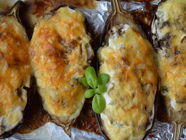 Ставим противень в прогретую до 180 градусов духовку и запекаем 40-50 минут. Примерно за 10-15 минут до готовности посыпаем баклажаны натёртым сыром и отправляем обратно в духовку.