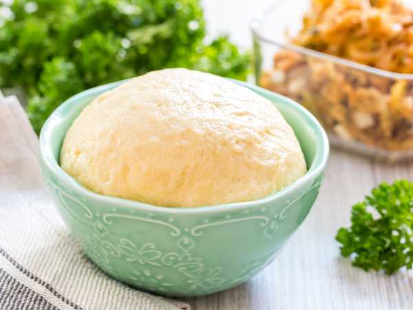 Распределите равномерно тесто по форме, желательно, чтобы она была прямоугольной, но нормально и по круглой. Измерила толщину теста зубочисткой, она получилась 7-8 мм, а была бы 1 см.