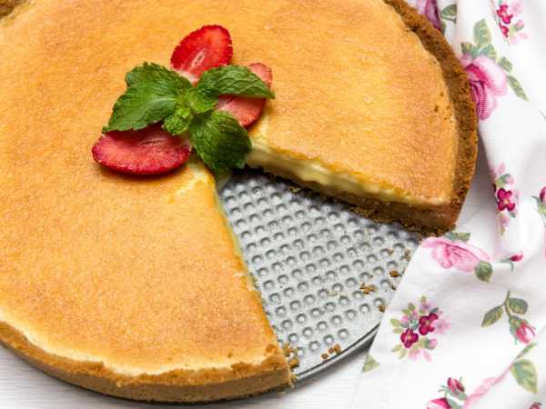 На подпеченную и немного остывшую за считанные минуты песочную заготовку вылейте лимонную начинку.