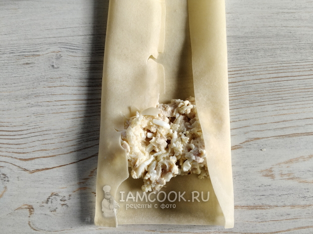 Несладкие трубочки из теста фило с начинкой готовим из таких ингредиентов.