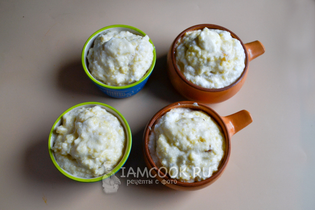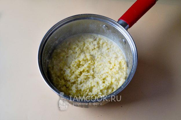 После закипания сделайте огонь тихим и варите до готовности крупы. Изредка помешивайте кашу, чтобы не прилипла ко дну кастрюли. Готовую кашу охладите до теплого состояния.