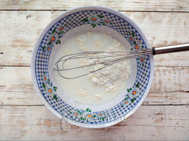 Перемешать массу, чтобы комочки муки полностью разошлись.