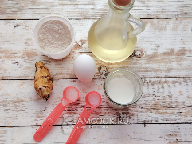 Собрать по списку продукты для блинов с топинамбуром на молоке.
