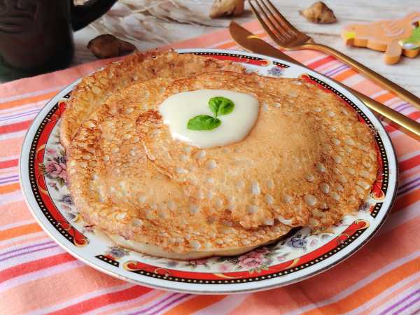Перевернуть блины и продолжить жарку на умеренном огне. Так поступить со всем тестом. Нужно учесть, что со временем сковорода сильнее прогреется и время на жарку блинов уменьшится, поэтому огонь постепенно нужно уменьшать, чтобы блинчики не пригорели.