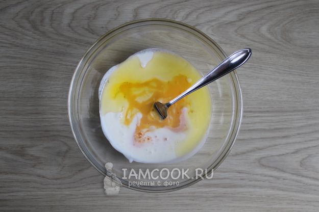 Топлёное масло нужно расплавить и охладить с горячего до тёплого состояния. Яйцо размешайте.