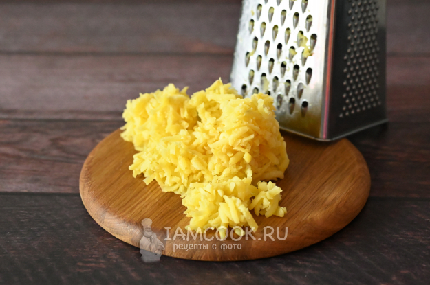 Картошку натрите на крупной тёрке. Вместо тёрки можно нарезать картошку очень мелким кубиком.
