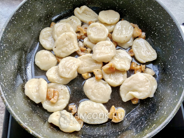 Отварить галушки в подсоленной воде в течение трех минут или пробуйте по вкусу.