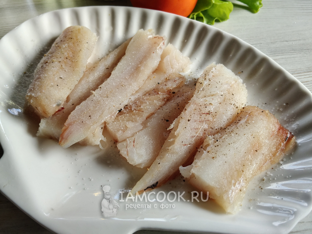 Рыбу нарезать на кусочки. Посолить и поперчить.