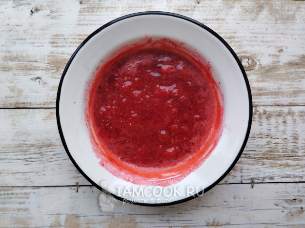 Погружным блендером или ручной толкушкой превратить ягоды в пюре.