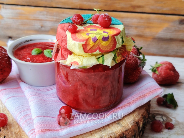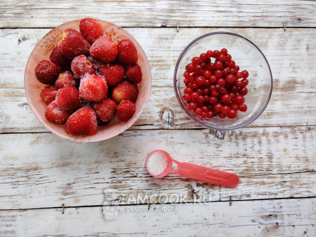 Собрать по списку продукты для приготовления джема из клубники и красной смородины. Джем можно приготовить не только из свежих ягод, но и из замороженных, предварительно дав им немного оттаять.