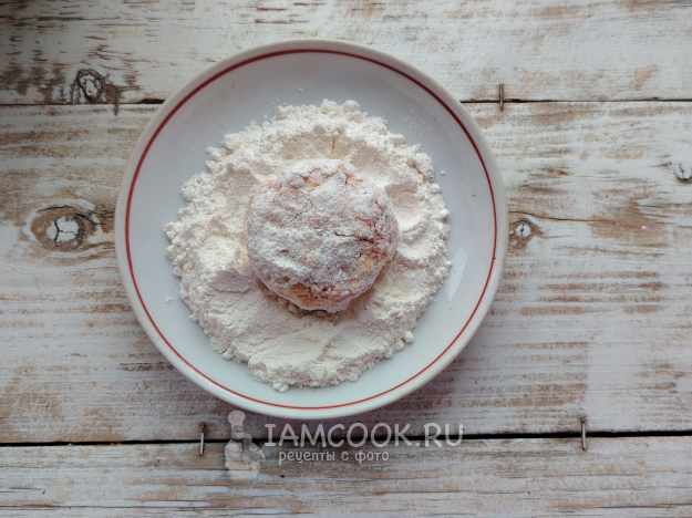 Чистыми руками взять немного творожной массы, обвалять заготовки-шайбочки в манке.