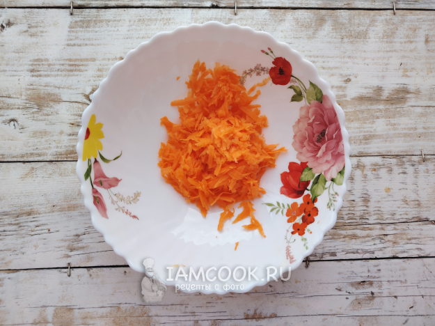 Морковку почистить, натереть на мелкой терке.