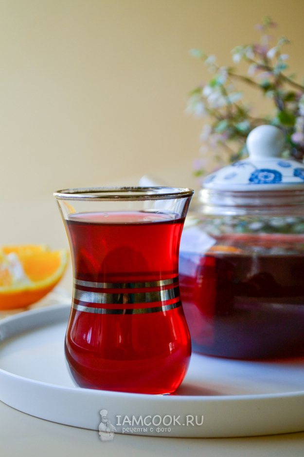 Приятного чаепития! По желанию в ледяной чай можно добавить сахар, мед. Мне чай понравился без подсластителей. Все ингредиенты так гармонично сочетаются: имбирь с корицей, сладкий апельсин с каркаде. Вкусно!