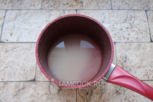 Выложите в кастрюлю с сахаром, растворенным в воде.