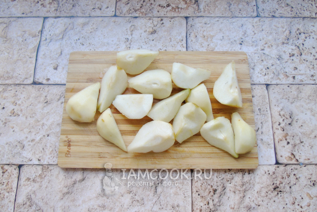Груши помойте, очистите, удалите сердцевину и нарежьте произвольно.