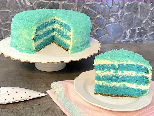 Разрезать корж на 2 части.