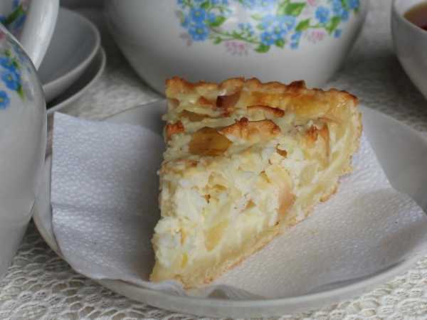 Готовый пирог с творожными шариками остудить и подавать к столу. Сверху пирог можно присыпать тертым шоколадом.